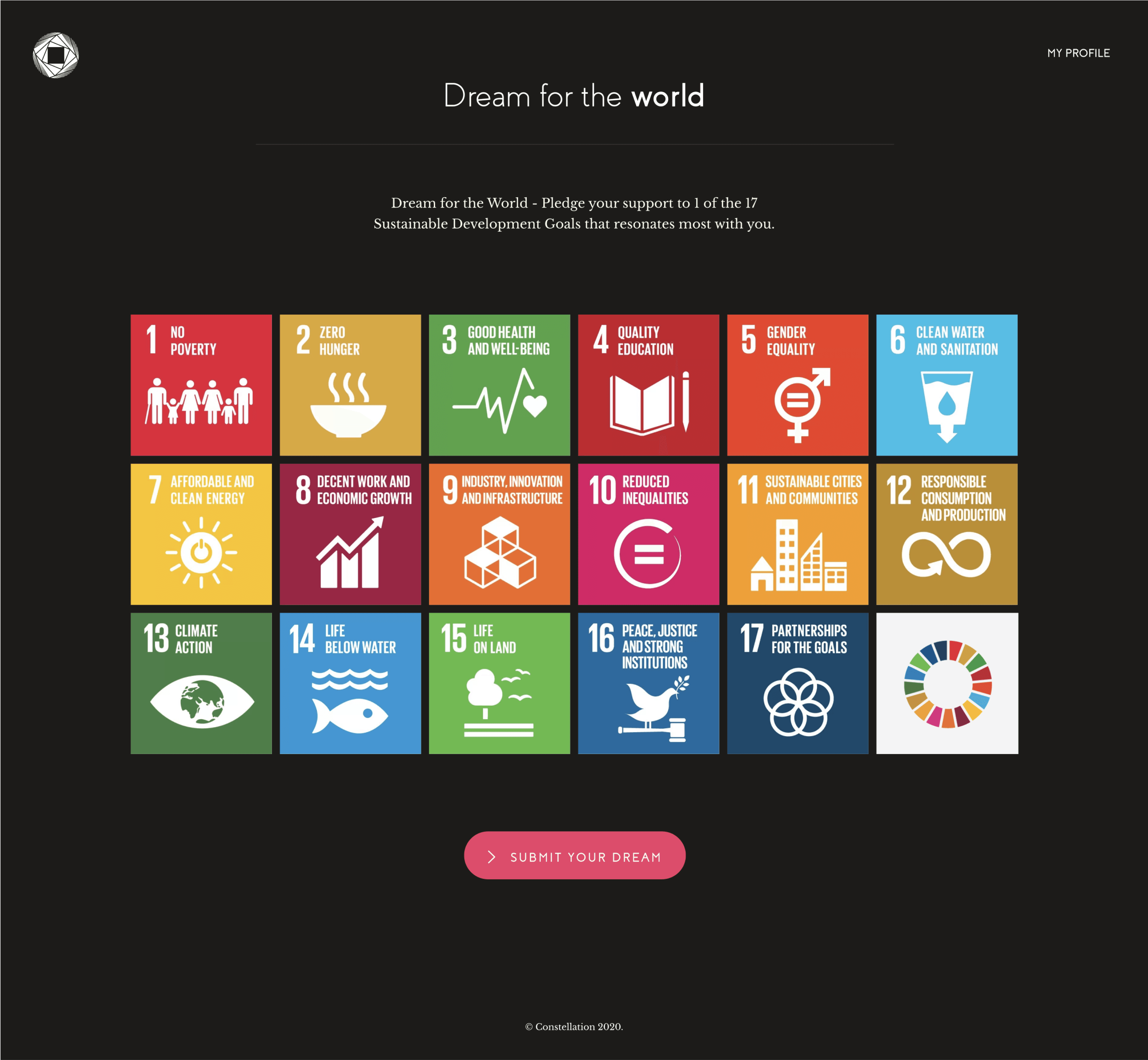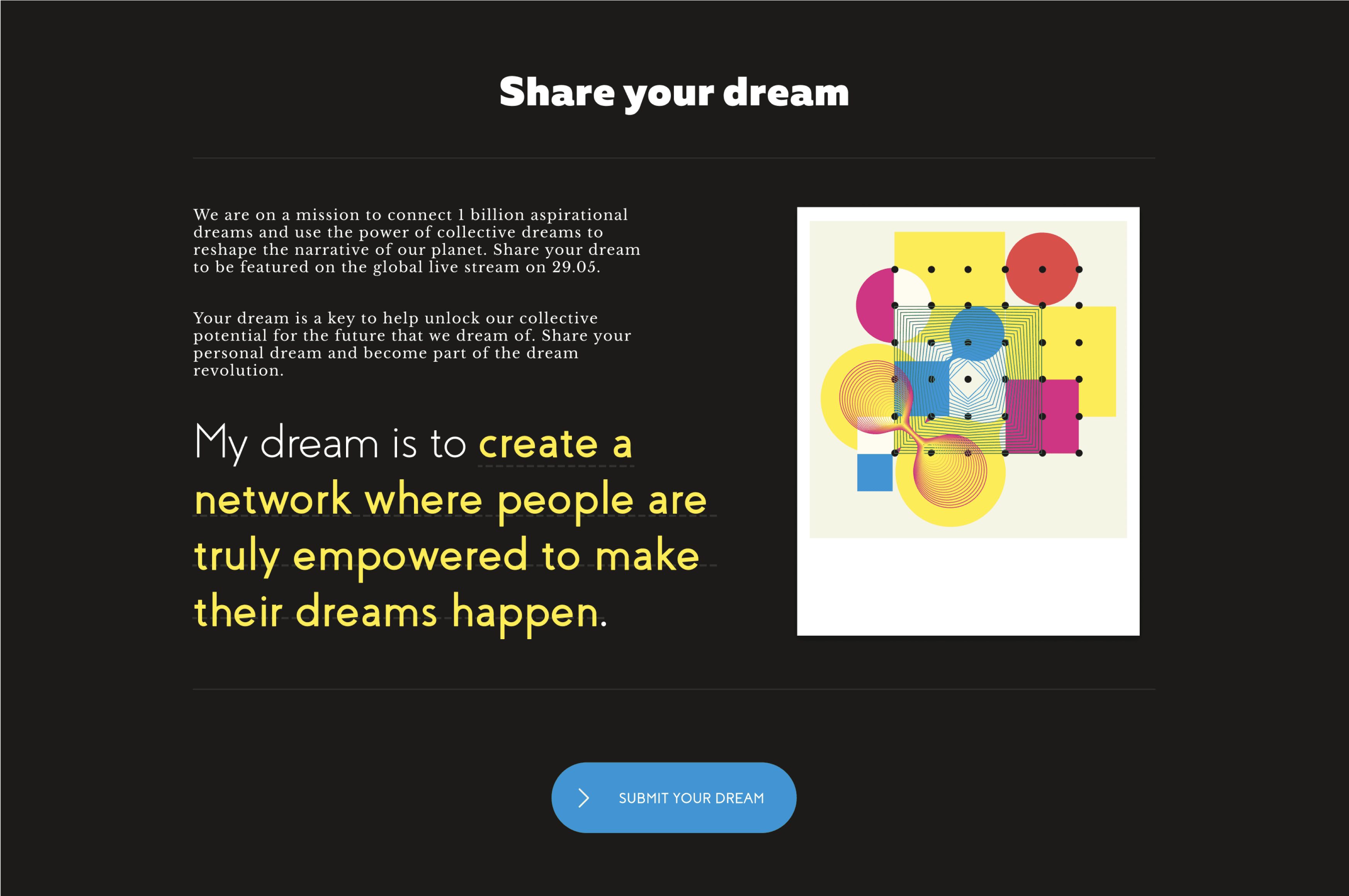 Future Works team designed a modular generative art system as an identity for the project as well as created an online platform where people could share their wishes, and data would be correlated for global actioning backed into United Nation’s (official partner) Sustainable Development Goals.