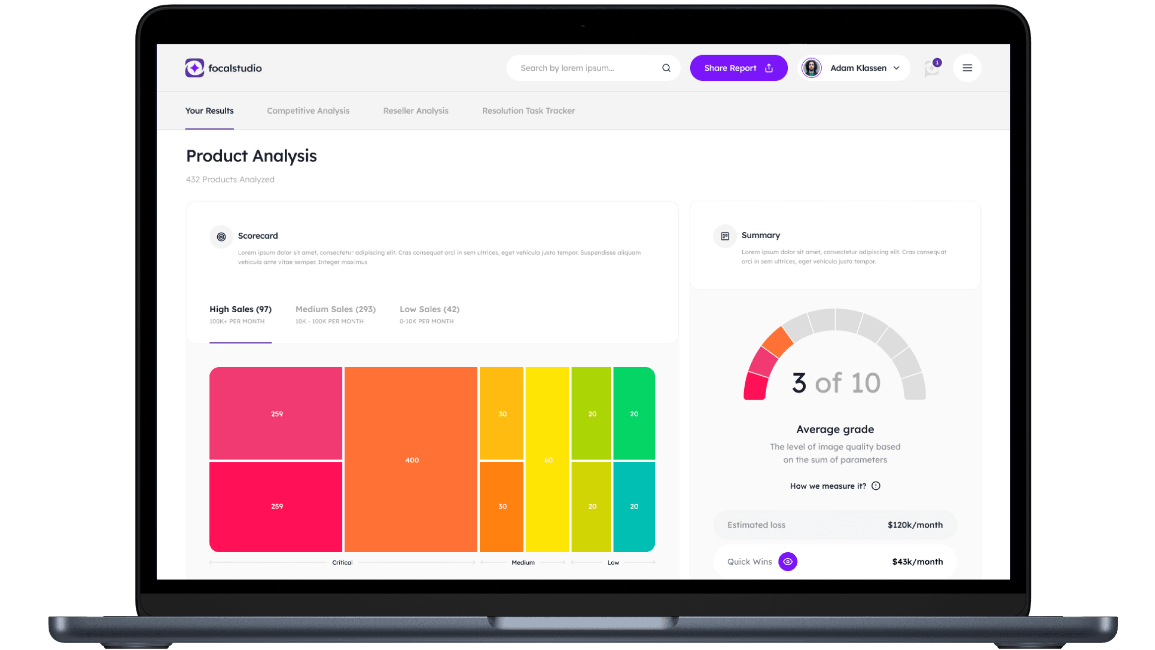 We designed benchmarking functionality that allows the user to easily see what their competitors are doing on a macro and micro scale. Again, ensuring that actionable steps can be taken by the user to refine.