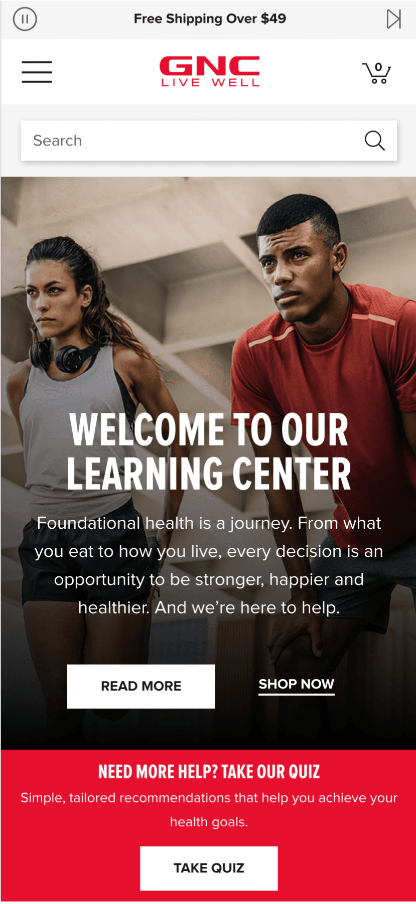Future Works analyzed the data coming from the GNC commerce system and current website experience to craft and implement strategic enhancements to drive higher engagement and conversion.