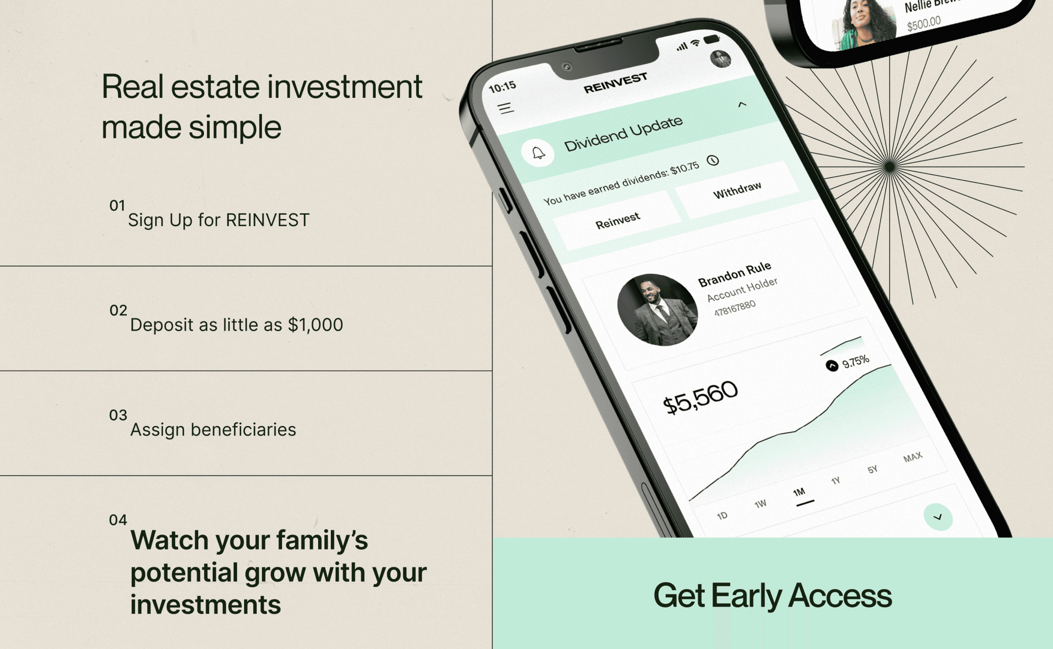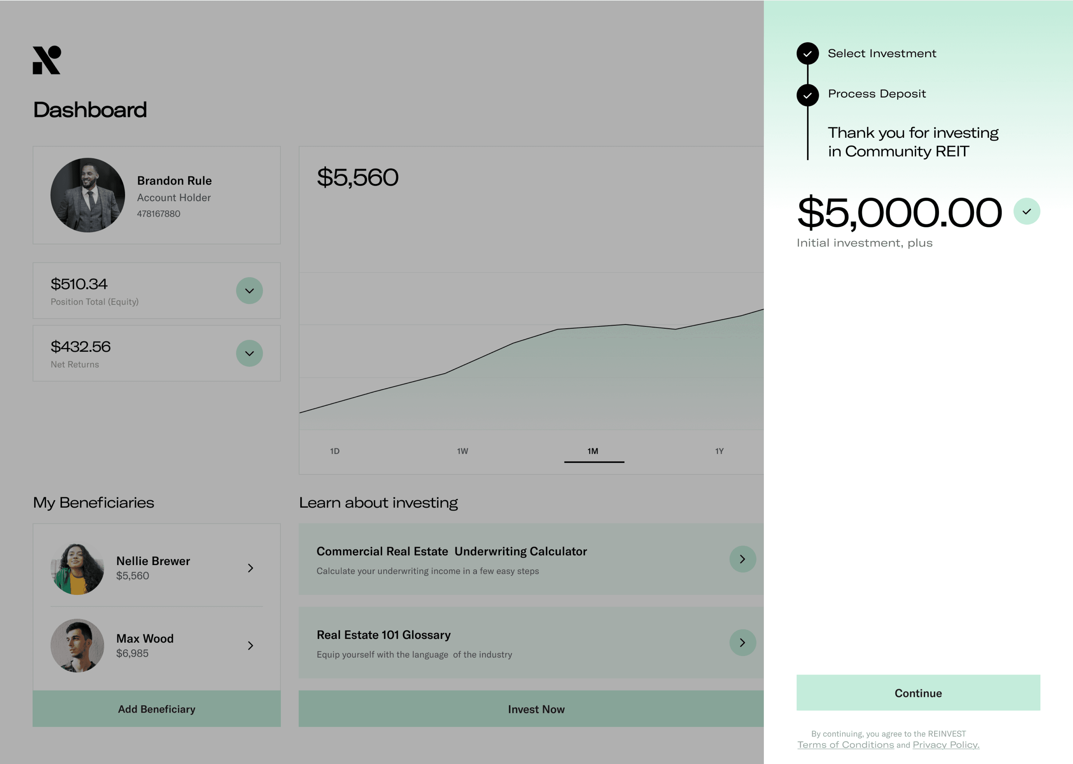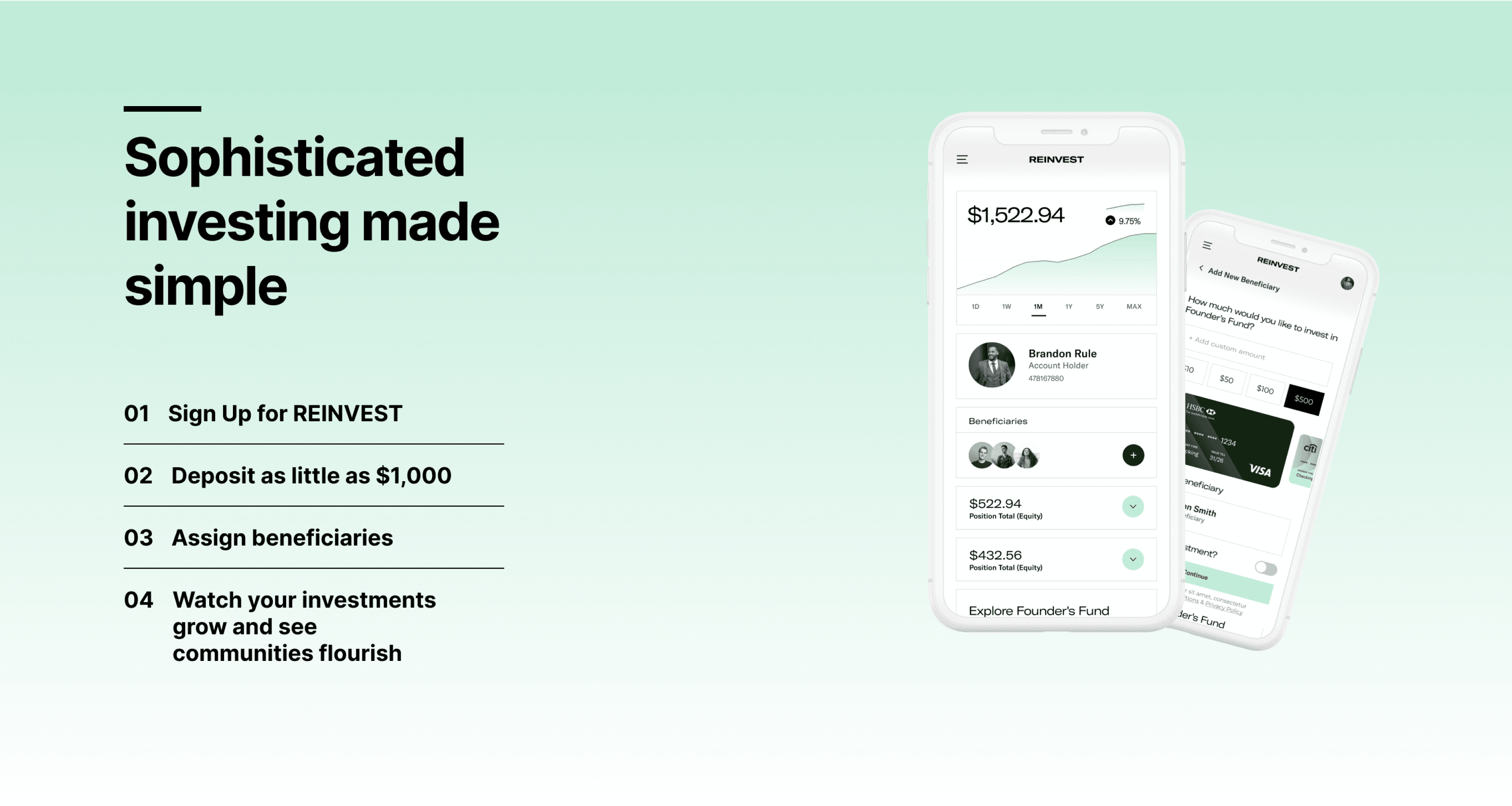 Future Works thought through the multiple step onboarding, investment and retaining experience flows to create a slick environment for uneducated users to easily engage and activate through the app.